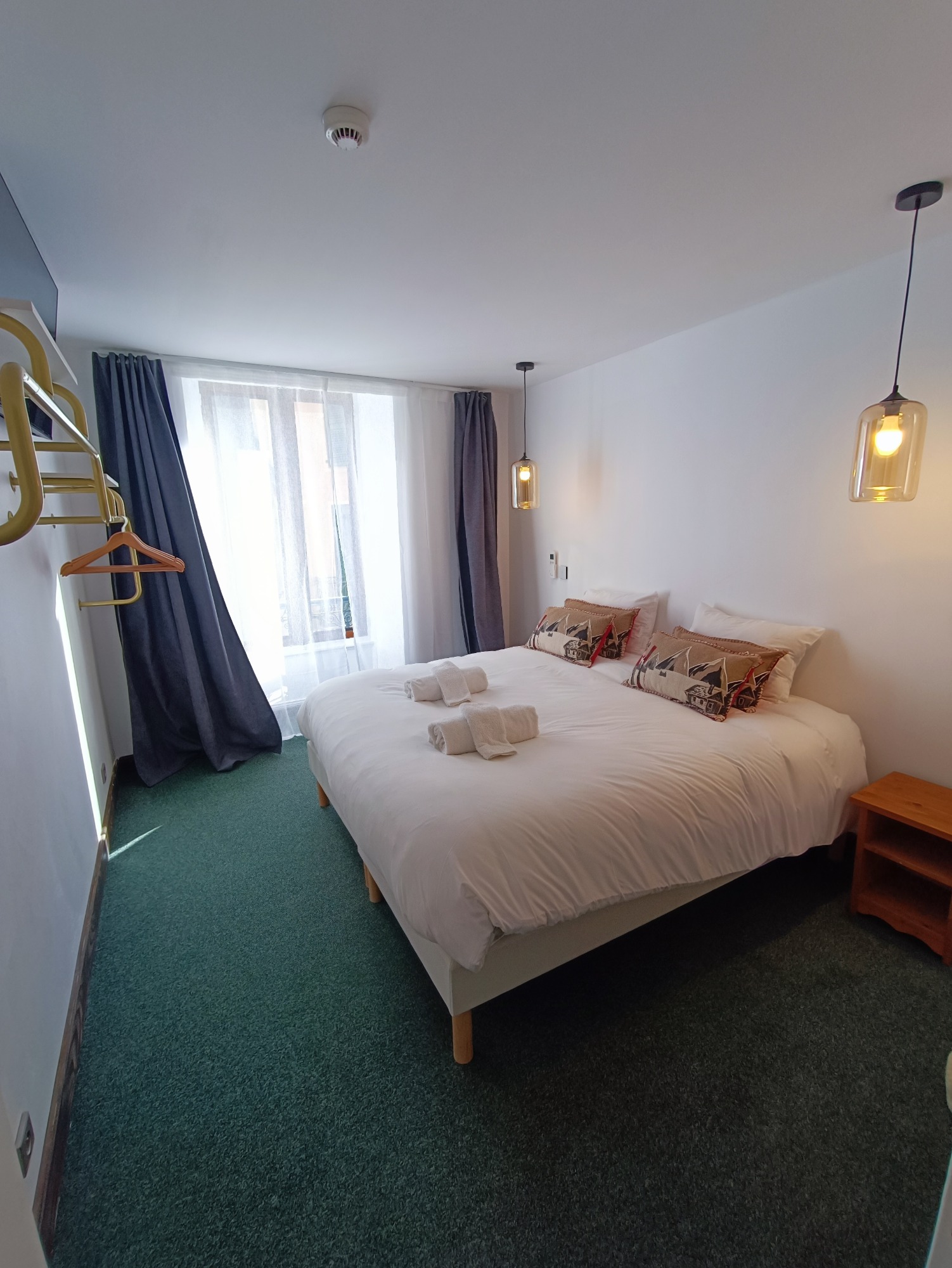 Découvrez notre chambre d'hôtel double climatisée, équipée d'une salle de bain privée, d'une télévision et du wifi gratuit pour un séjour confortable à Bourg Saint Maurice - Les Arcs