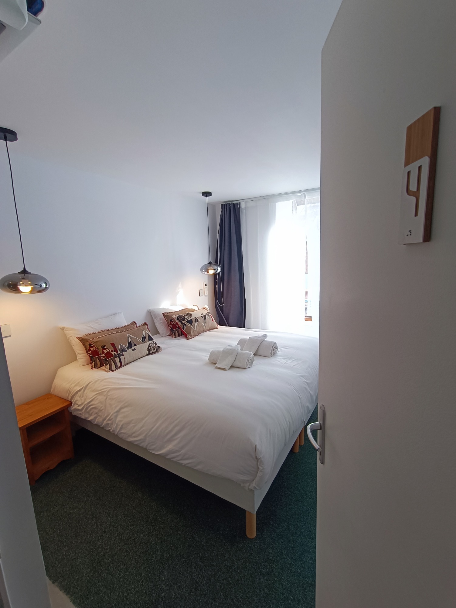Découvrez notre chambre d'hôtel double climatisée, équipée d'une salle de bain privée, d'une télévision et du wifi gratuit pour un séjour confortable à Bourg Saint Maurice - Les Arcs