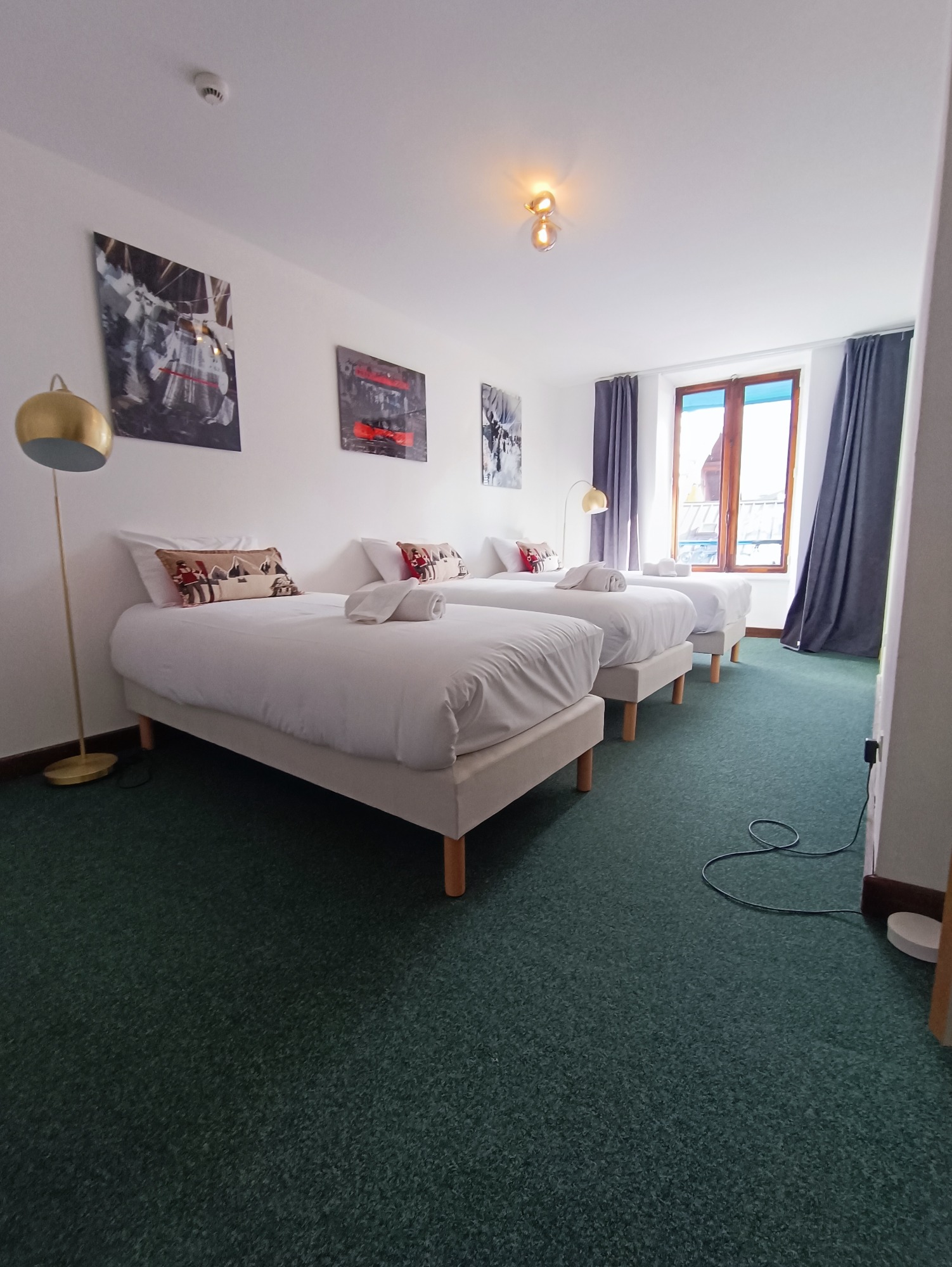Découvrez notre suite d'hôtel climatisée et spacieuse, comprenant une chambre double, une chambre triple et une salle de bain privée. Profitez également d'une télévision et du wifi gratuit pour un séjour confortable à Bourg Saint Maurice - Les Arcs